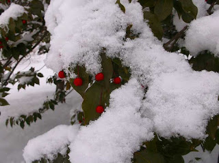 芸術村”あきたびくらぶ”庭!(旧社宅、旧化石館、旧研究所)ホテル入口で御客様に、より便利に施設移動。”ソヨゴ”雨まじりの雪。凍り、常緑の木々は”シン”とした空気の中に凛と立つ!雪のある庭!澄んだ空気!