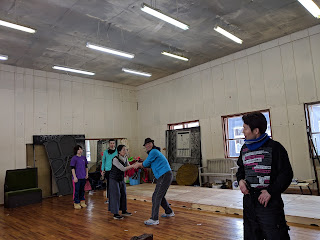 昨日から近くのホールをお借りしてセットも明かりも入った稽古が始まりました♪