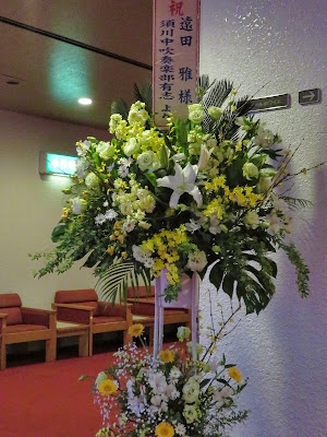 千穐楽には新人で一年頑張った遠田雅さんへ、同窓の部活動の仲間たちから立派なスタンド華がサプライズで届きました。