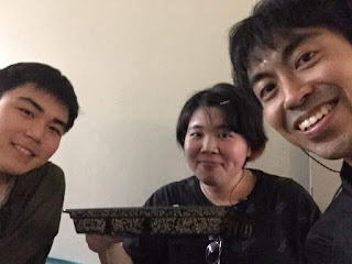 (公演のお弁当の時の一枚☆右は舞台監督の井田君、左は2年目の武君)