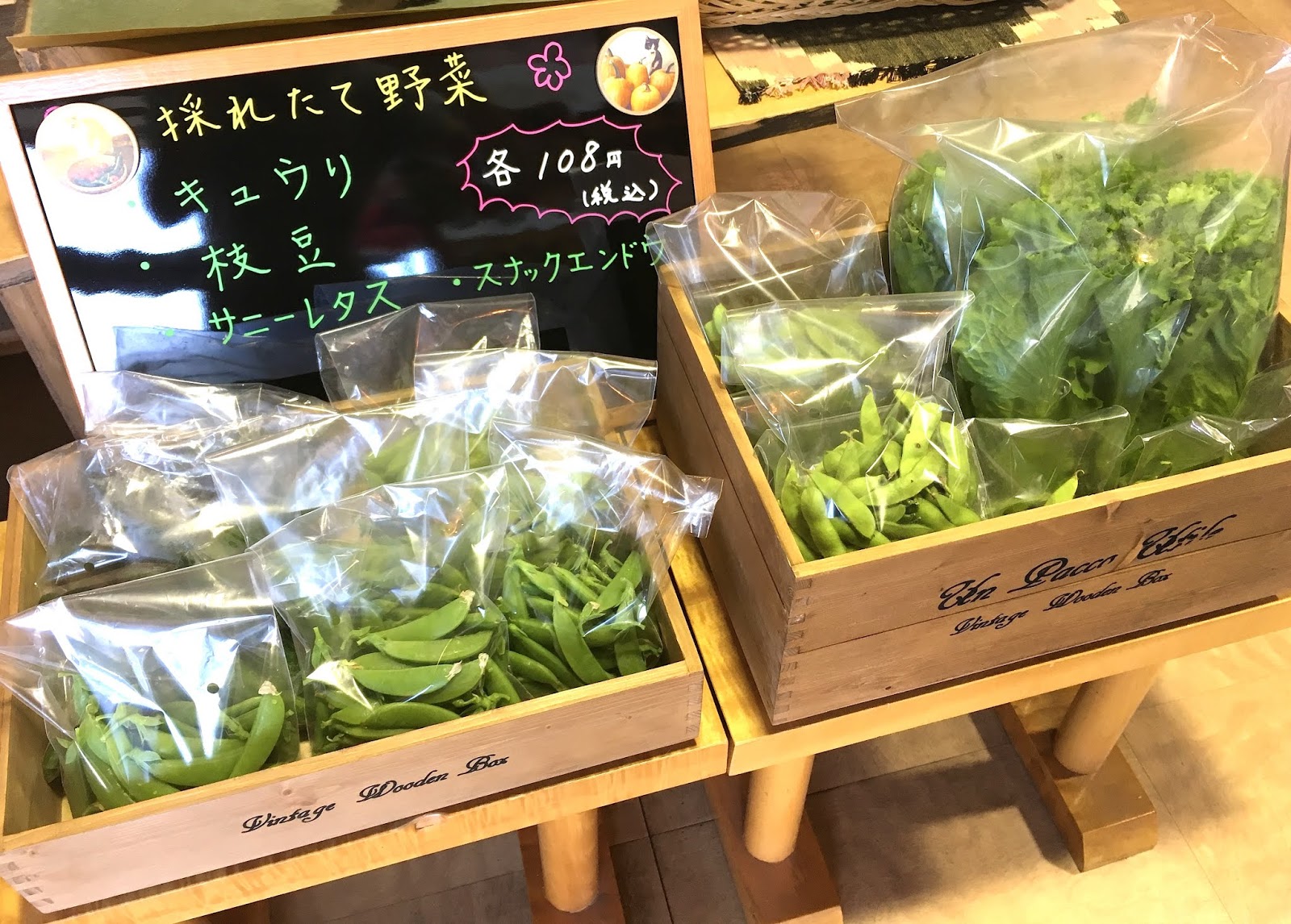 森林工芸館ショップでは、地元の朝採れ新鮮お野菜のミニコーナーが