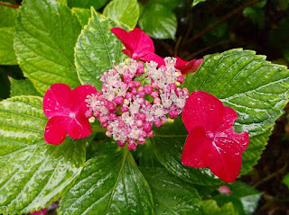 東屋庭”雨の紫陽花”。それぞれの個性。同じ土でも色も形も違う。隣り合わせ、グラデーションに咲く。皆違って皆良い!素敵な言葉を生み出す”日本語”。音楽も言葉も踊りも、そこに暮らす自然と共に生まれてくる心。
