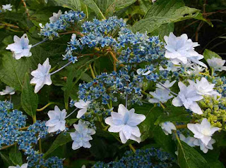 東屋横に咲く紫陽花。その名も”隅田の花火”(白)。自然の造形から花火が生まれ、花火から新しい花が生まれる。地球と共に暮らし、生きて来た日本列島。美味しい水を生み出す山々。樹木の浄化力。無数の命の力。