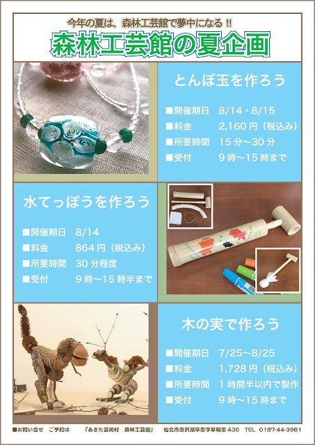 森林工芸館、夏の手作り体験てんこ盛りー! ☆特にお盆期間ー!!