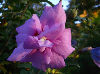 朝6時の庭。槿(むくげ)の八重。プルチェリマス。同じ花も秋の光が特別な物に映し出す。自然の色を愛でて来た人間。模倣し生み出されて来た芸術。優しい心は、ずっと伝承して行く。樹の様に!花の様に!空を飛ぶ鳥の様に。