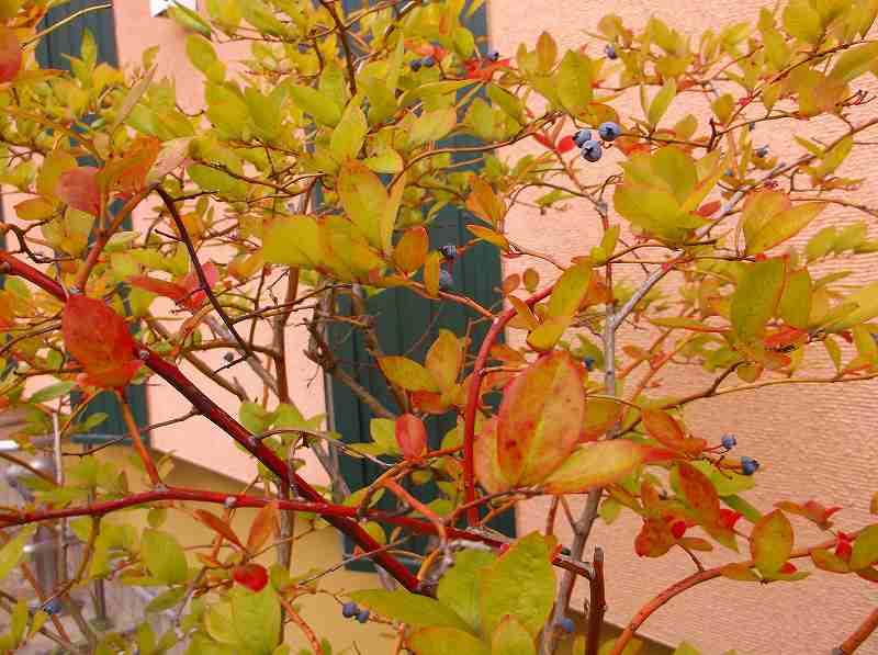 ホテル売店前花壇!ブルーベリーほんのり色付く。名残の実。”冷凍パック”も大人気。ジャムに、お菓子に。芸術の秋、食欲の秋。人間と自然が豊かに調和して行く四季ある日本列島。智慧と工夫と対話。諦めぬ心!