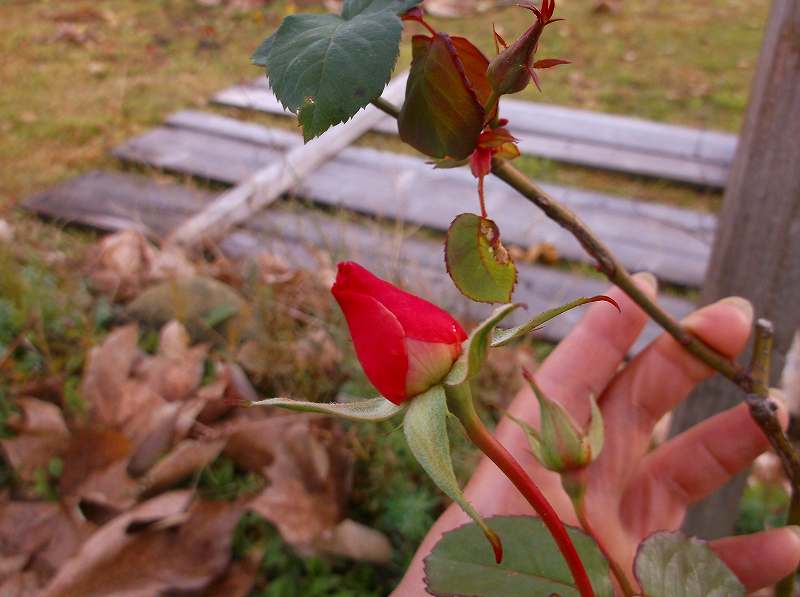 今日は里の”初雪”!雪囲い、雪吊り作業をドンドン進める。広い敷地。小劇場(旧記念館)庭。”カズエの薔薇”!大きな一輪と二つの蕾。庭と歴史、命。(ユー君、ヤッ君、和枝さん)誰の上にも戦闘機が飛ばない時代へ。