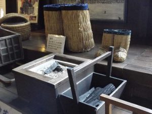 角館武家屋敷!暮らしの展示。その時代に必要なものを(作る)。1つの品に編む手が、踏む子供たちが見える。お客様に炭を注ぐ。冬のもてなし。