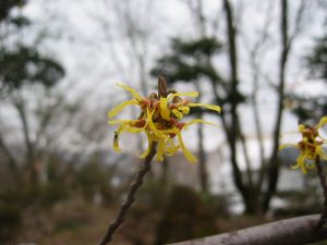 春一番の花!万作(まんさく、先ず咲く)小さくて気付くのが難しい。雪の残る薄氷の朝。JUST DO IT!彼のアフガニスタンの地で命にとことん向き合ったDr、中村。優しい日本人。