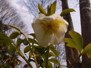 ”こぶし”がキラキラと花を開き始める。種まき桜!地元の呼び名。山を見て田畑を起こす。花の咲く時期に合わせる作業。コブシの足元にクリスマスローズ。大地の声、風の声。