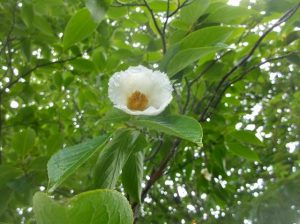 小劇場(旧記念館)庭!ヒメシャラ(夏椿)。椿の花形。夏に咲く花。沙羅!(しゃら)古典落語を愛する心。古きを”耕す人”。空に昇った人。命は心にこそ残る。”及位野衣”本物のプロペラ音がクライマックスに響く!