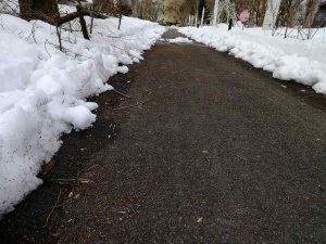 きゃんどぽんぽんじい(街道がポカポカ)融けるスピードに合わせ遊歩道の雪崩し。一冬除雪大奮闘の雪山からはゴミが。ゴミを拾い、野鳥の食べ跡を掃除し、崩れた土壌を治して行く春!”白鳥”が今年もシベリアへ帰る。道!