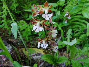 海老根(えびね)日本原産、ラン科エビネ属。花言葉は(謙虚)。他に学び続ける真っすぐな心。わらび劇作品(龍角散)咳が止まらない、服用する薬が喉に出来るだけ長く留まる様に工夫された。