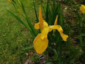 小劇場(旧記念館)バイカウツギ白梅香!足元に黄菖蒲(きしょうぶ)。多年草、帰化植物。浅い水域を好む。屋根からの雨泥濘を(ぬかるみ)”吸い上げ”整えてくれる。雨季前、薬草であり厄を払う。
