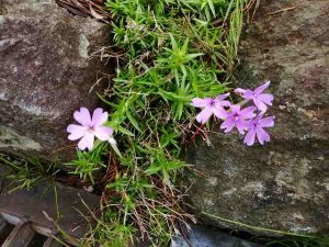 工芸館ショップ前花壇石組み。敷地内で育てた芝桜を移動移植。”根が生きていれば”必ず着く。移植のやり方を教えてくれた相方は89歳。人生、経験。引き継いで行く。