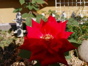深紅の薔薇!ホテル売店前花壇。水が遣れない。天からの恵み雨水。ここでも生き抜く”咲く”クリスマスローズ”も暑さに弱いのに頑張った。コロナ3年。仕事は戻っても油断は出来ない。立ち止まる勇気、やり直す勇気”繋げ!”