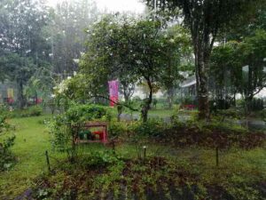 久しぶりの雨続き。今日は側溝が溢れるほど土砂降り。雨の庭師。巡回雨量により”何が起きているか”確認、処置計画を練る。わらび座歴史ミュージアムの大窓から(ノリウツギ)白!樹木に守られる。