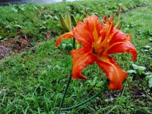 社宅も雨の度、草が力付く。オレンジの野カンゾウ。ユリ科。春は山菜(天ぷら等で楽しむ)。緑一面の敷地”ランタン”の様に光る。忙しい毎日だけど、”魂が追いつく”のを何度も待つ。深呼吸