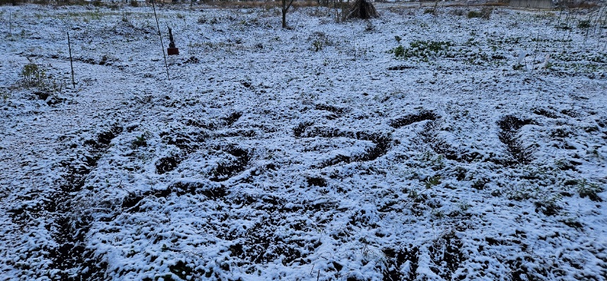 夏場に掘った「わらび」の三文字、雪によって浮き出てくる