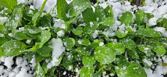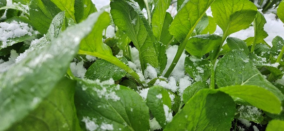 雪の中でも懸命に生きる野菜たち