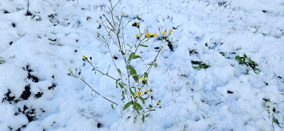 ・茎が異様に長いタンポポ「ブタナ」と雪(以前はタンポポモドキとも言われていた)