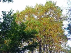 中央広場ユリノキの紅葉(黄葉)隣の椛は未だ緑色。紅葉の最後は赤。今紫色に在る野村楓は深紅に変わる。色んな木が在って色んな性質、原産国の違い。1つの庭に集まり生きる。皆違うから美しい!