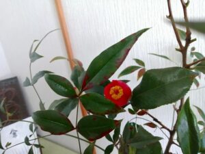年末元旦用に生けられた南天と椿。玄関は暑過ぎず、寒過ぎず。ゆっくり時間をかけて寒椿が開いて行く。毎日少しずつ。生きている!一人の人生に歴史。ミュージカル”男鹿の於仁丸”沢山のコラボが在る