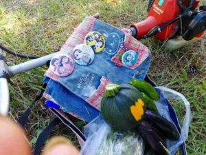朝夕暑さが和らぎ、やっと一息。それでも日中の暑さは秋の空へ!直射が差し込む。草刈りも首に保冷剤を巻き防御して作業する。”重ちゃん”が家庭菜園の野菜を届けてくれた。種から育てたんだ!