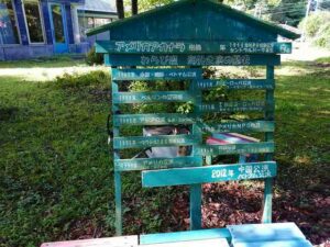雨上がりと共に草刈り開始!秋の熱射の激しさは今度は直射へ。長時間浴びていると体に熱が籠り、抜けなくなり危険。遊歩道の木陰(海外公演歴史年表)わらび座歴史と自分の人生を辿る。庭美術館!