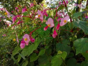 秋の風に吹かれて秋海棠が揺れる。晴天に稲刈りが進み、刈終わりの田んぼにはカラスや白鷺。落穂拾い?零れた稲穂。誰も”御金を払え!”とは言わない。秋海棠、花言葉(未熟)。未完これ完成也。