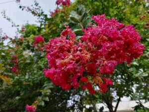 総務庭(旧研究所)百日紅(さるすべり)ミソハギ科、花言葉は(雄弁)。誰もの心を打つ言葉が在る。強くなくても、優しくても、人を動かす、そよ風の様な(言葉)。やせ細った子供達、助けたい。