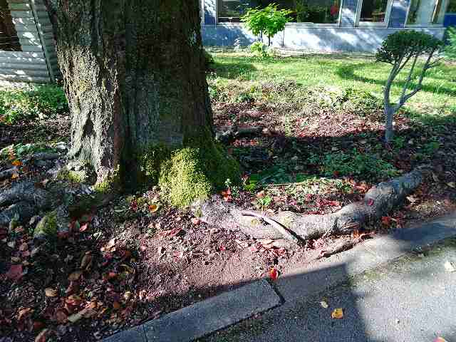 田沢湖ビールさくらホール前庭。28期研究生(アリちゃん、たっちゃん)入座記念樹。劇場と共にグングン育つ。アスファルトの遊歩道を避けて根は横へ!太く逞しく呼吸する。時の流れ、命の流れ。