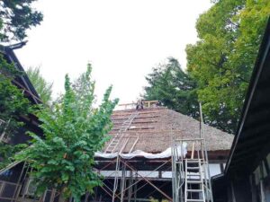 秋は冬に向けての補修。角館武家屋敷!若親方は屋根のてっぺんを解して下の仲間に落とす。一度登ったら一仕事着く迄降りては来ない。秋の風物詩!治して暮らす歴史文化財。御子孫が居る凄さ。