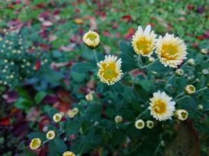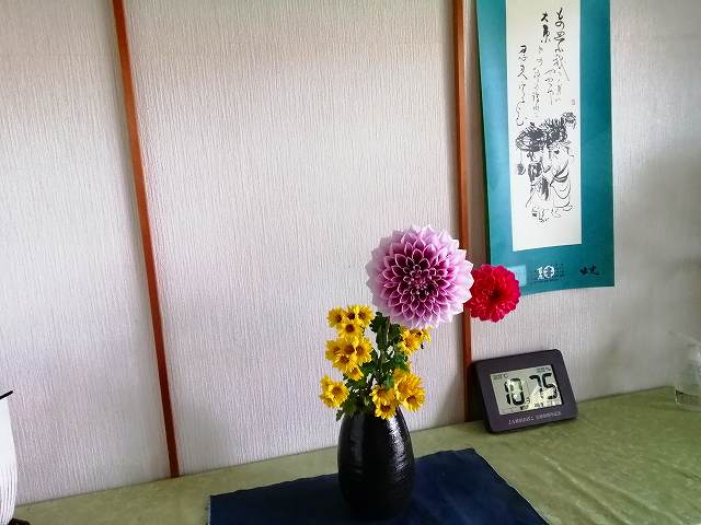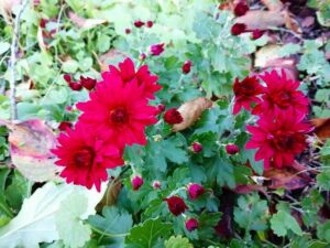 小さな赤い菊、咲き始め。あんなに暑かった夏が嘘の様。宇宙空間の中に在る(地球)不思議な命。植物が生まれ、酸素が生まれ、命が次々進化を遂げた地球。”物言わぬ”花や木々に生かされている人類。
