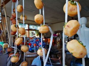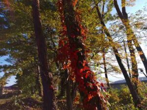 忙しい作品を並行し次なる小道具が毎日生み出されている工房。花一輪行ける暮らし、干し柿を見る安らぎ。松林に紅い蔦。朝陽が差し込む。雨に朝霧。地球の表面を木々や草が守っている。カムイ!