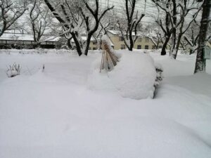 あきた芸術村の庭だより「ホワイトアウト!」