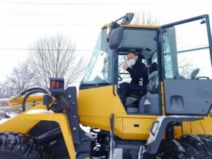 同級生の総務課長、ミスター高橋!黄色のローダーを上手に操作。雪質、長期予報、これからどうなるか?敷地内イベント、御客様やスタッフの動き、全てを考え除雪の優先順位を決める。頭が下がる。