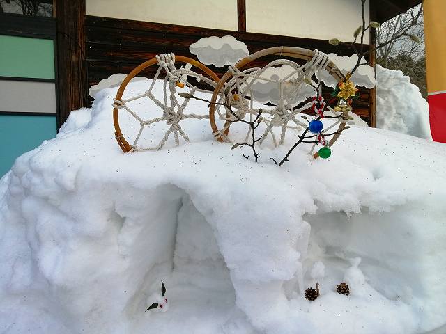 秋に庭から集めてドライにした花(アジサイ、ドリフトローズ、ヒオウギ、ローズヒップ)企画?が無ければ誰も欲しがらない。あっ!”里沙ちゃん”に持って行こう。山の図書館。週末は雪まつり!