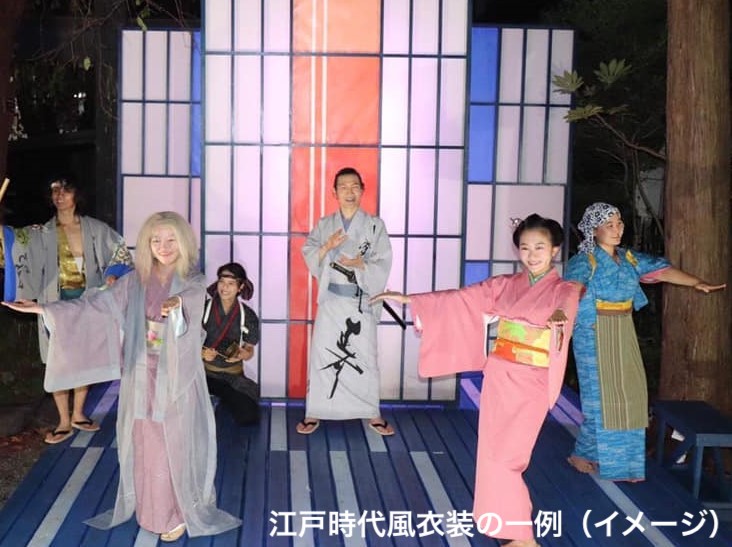 江戸時代をイメージさせる着物姿で、まちなかを歩いていただきます。