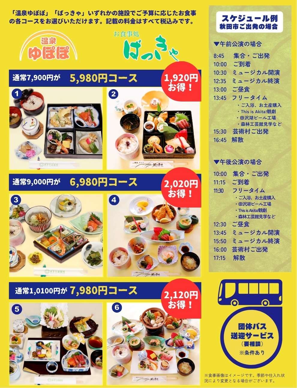 ※ お食事は、温泉ゆぽぽ・お食事処ばっきゃ、どちらかを選べます。