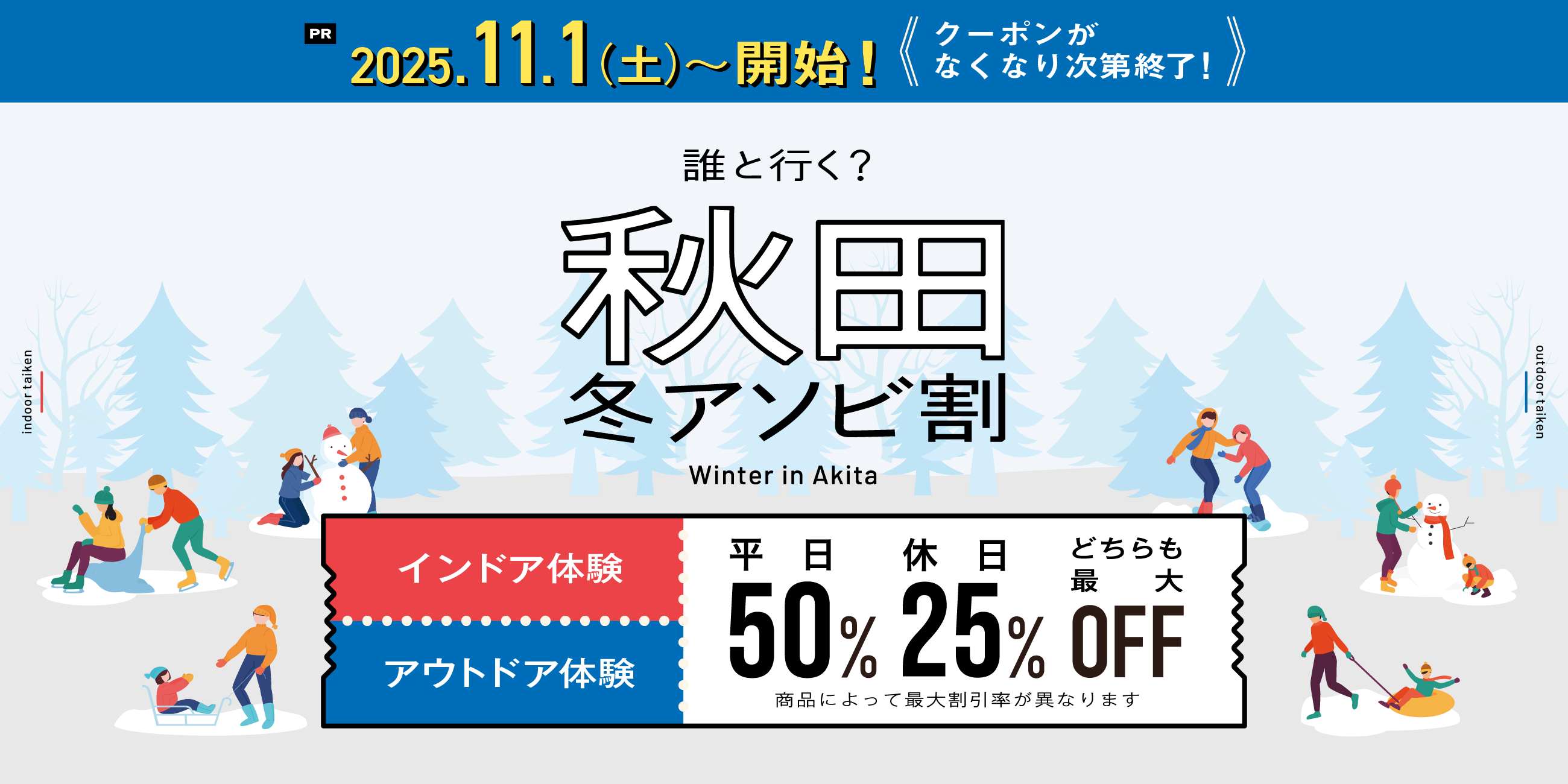 ※予約サイト「アソビュー!」、「アクティビティジャパン」から冬アソビ割クーポンを利用して予約すると半額!