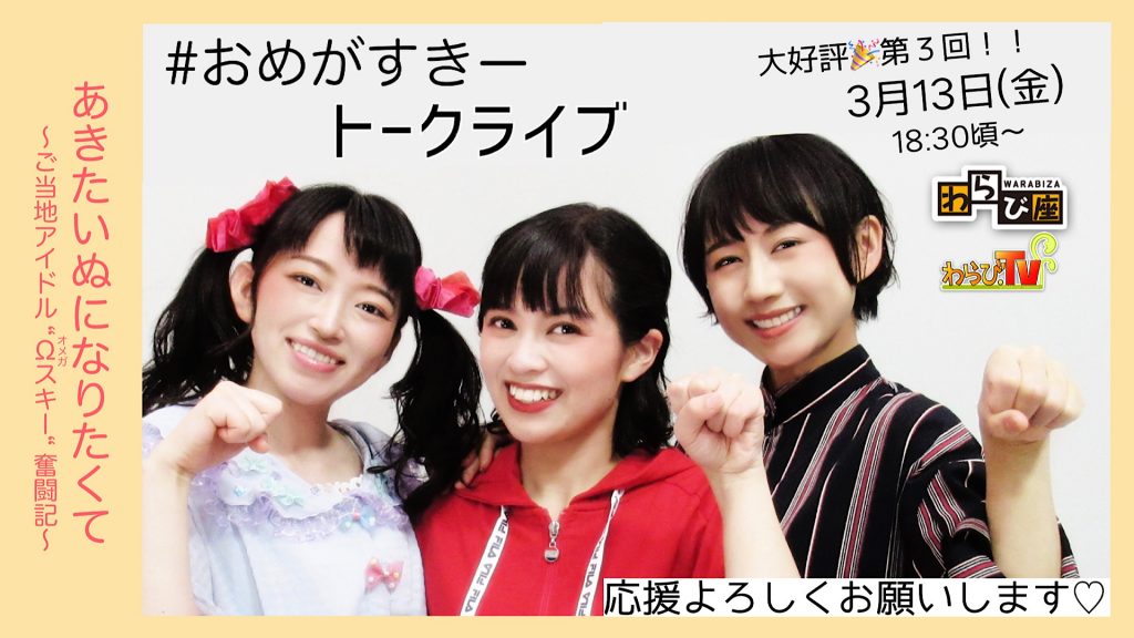 3月12日「Ωスキーといっしょ♪」13日「トークライブ第3回」を生放送いたします