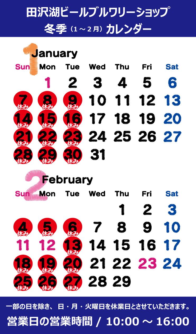 田沢湖ビール 冬期のショップ営業日・定休日のご案内[1月〜2月]
