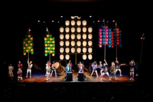 客席に太鼓と提灯を設置し、全席参加型で東北6大祭りを体感できるノンバーバルステージ「祭シアター『HANA』」。