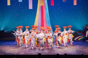 東北6大祭りとは、青森ねぶた祭・秋田竿燈まつり・盛岡さんさ踊り・山形花笠まつり・仙台七夕まつり・福島わらじまつり。これらの祭りをモチーフに創作されたオリジナルステージです。6大祭りのエッセンスが一度に楽しめる贅沢な舞台です。