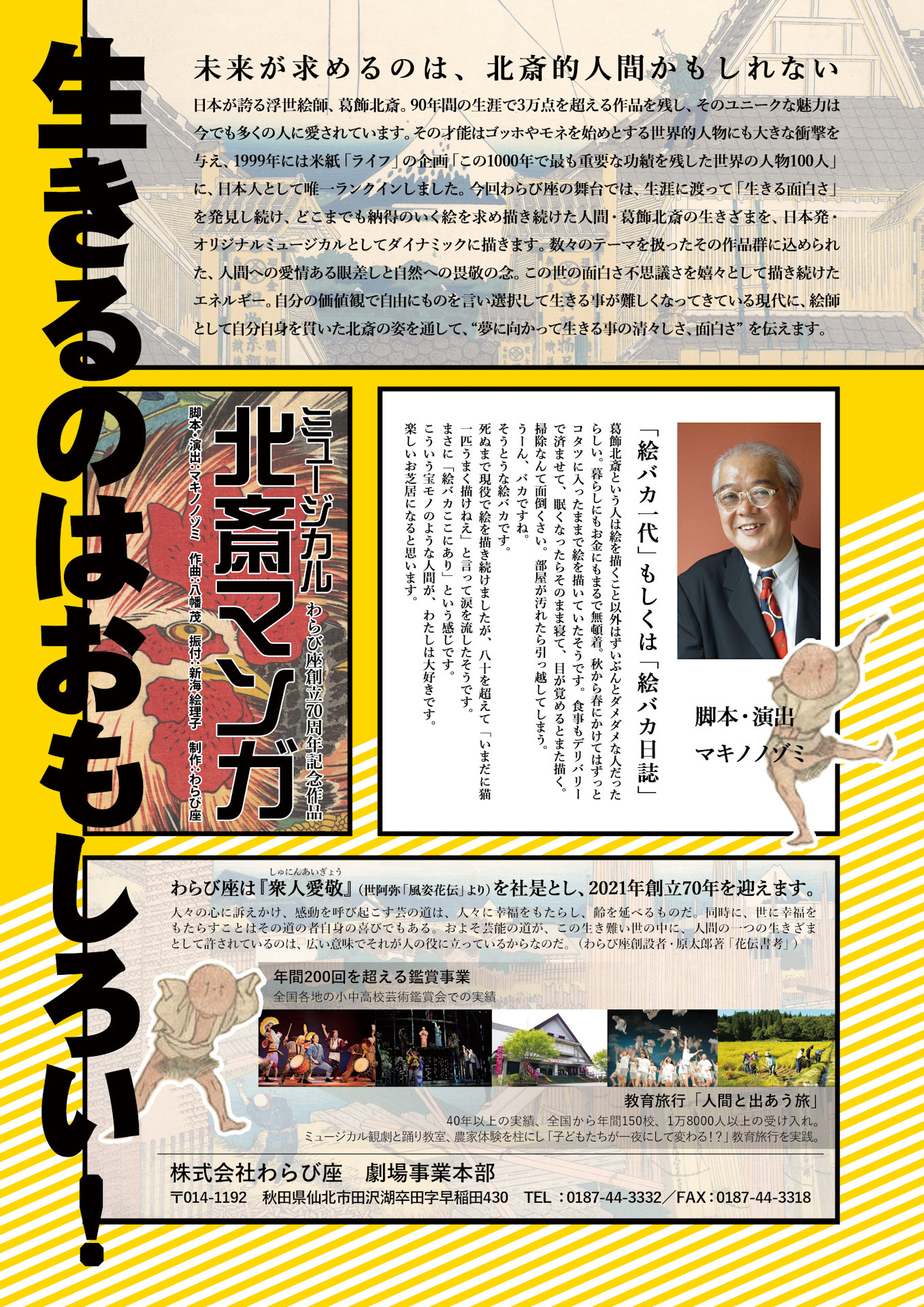 ☆ミュージカル「北斎マンガ」は、来年迎えるわらび座創立70周年の記念作品となります。