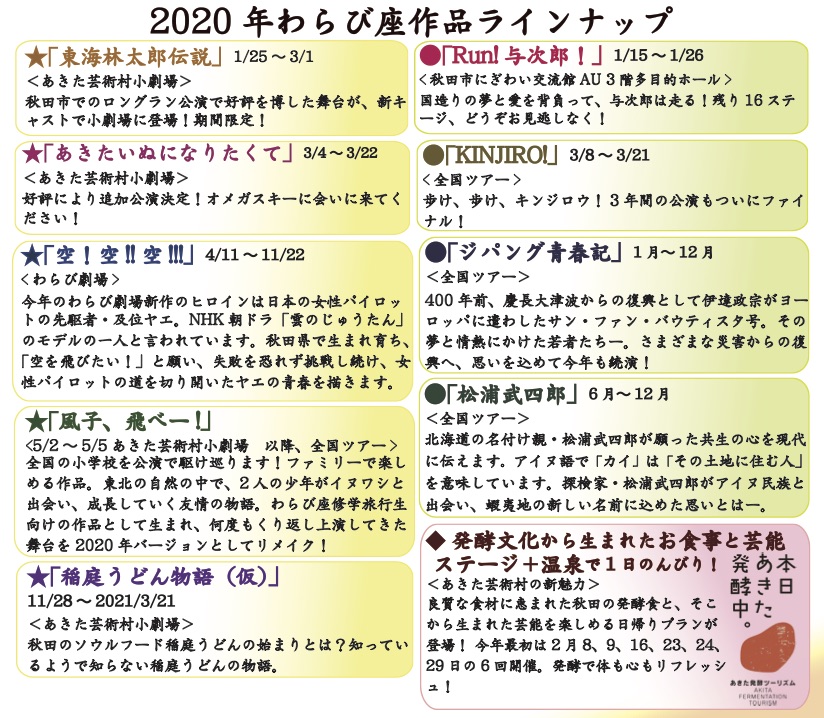 本日より公演の「新春顔見世」にて、今年のわらび座作品ラインナップを発表いたしました。