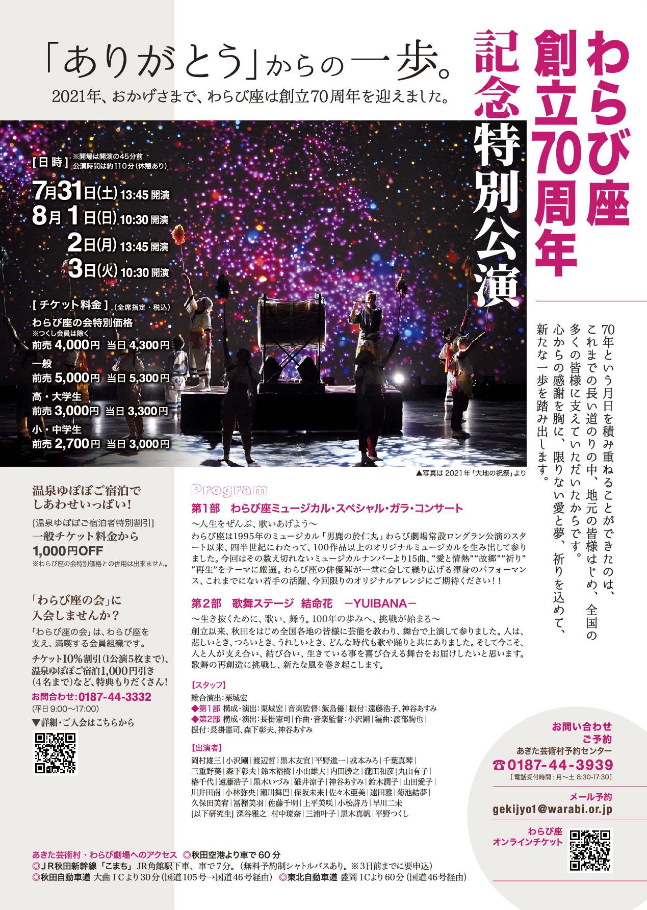 【7月31日〜8月3日】詳細発表!「創立70周年記念特別公演」