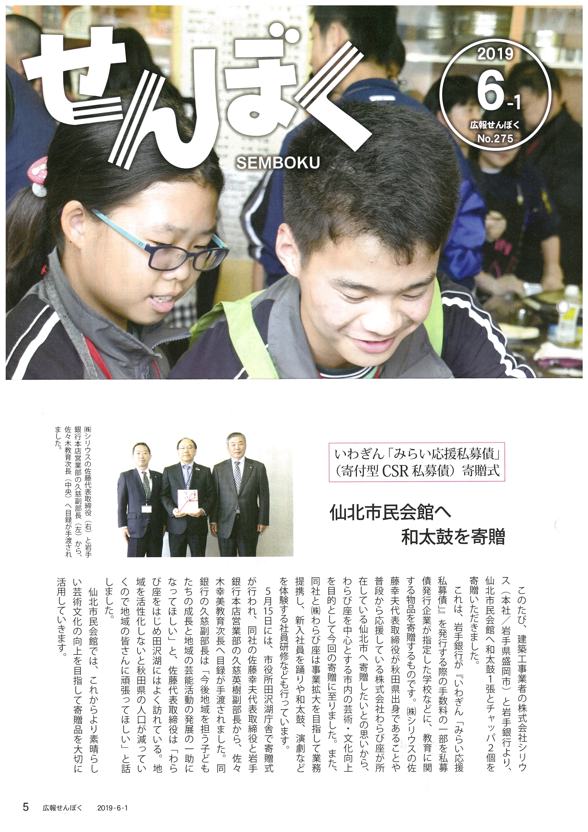 今回の経過や贈呈式の様子は仙北市広報「せんぼく」6-1号(№275)5ページに詳しく紹介されています