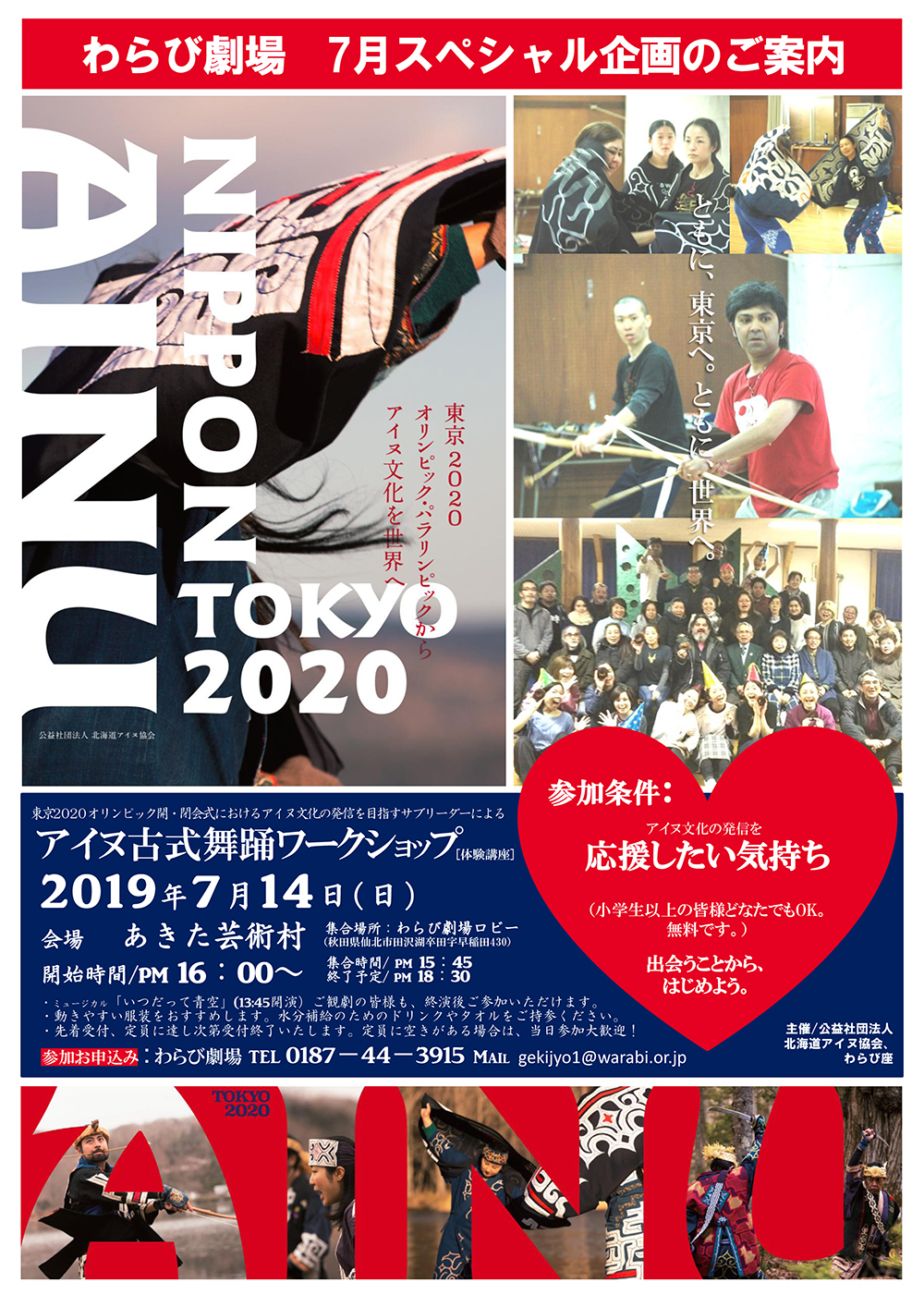 ◆参加お申込み/わらび劇場 TEL 0187-44-3915 Mail gekijyo1@warabi.or.jp